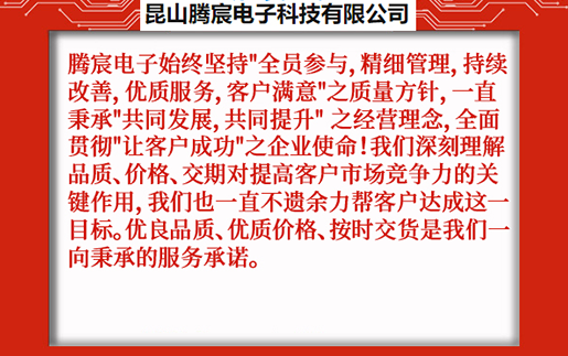 昆山騰宸電子科技有限公司位于中國(guó)線(xiàn)路板加工之都昆山千燈,公司專(zhuān)注于電路板研發(fā)設(shè)計(jì)、PCB抄板、元器件采購(gòu)、SMT貼片加工、組裝測(cè)試,為客戶(hù)提供一站式電子制造服務(wù)。騰宸電子始終堅(jiān)持"全員參與,精細(xì)管理,持續(xù)改善,優(yōu)質(zhì)服務(wù),客戶(hù)滿(mǎn)意"之質(zhì)量方針,一直秉承"共同發(fā)展,共同提升" 之經(jīng)營(yíng)理念,全面貫徹"讓客戶(hù)成功"之企業(yè)使命!我們深刻理解品質(zhì)、價(jià)格、交期對(duì)提高客戶(hù)市場(chǎng)競(jìng)爭(zhēng)力的關(guān)鍵作用,我們也一直不遺余力幫客戶(hù)達(dá)成這一目標(biāo)。優(yōu)良品質(zhì)、優(yōu)質(zhì)價(jià)格、按時(shí)交貨是我們一向秉承的服務(wù)承諾。 ...